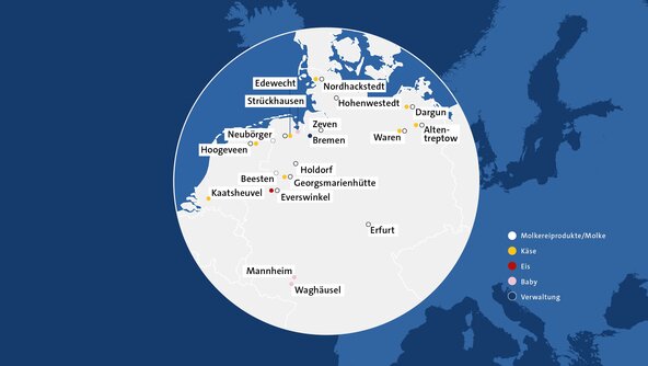 Mit mehr als 20 Standorten, darunter der Unternehmenssitz in Zeven und der zentrale Verwaltungsstandort Bremen, ist die DMK Group Deutschlands größte Molkereigenossenschaft. Auch in den Niederlanden, Italien und in ausgewählten international Hubs sind wir aktiv und nah bei unseren Partnern und Konsumenten. Als einer der größten Lieferanten des deutschen Lebensmitteleinzelhandels und mit einem Umsatz von 5,1 Milliarden Euro gehört die DMK Group europaweit zu den führenden Unternehmen der Ernährungswirtschaft.