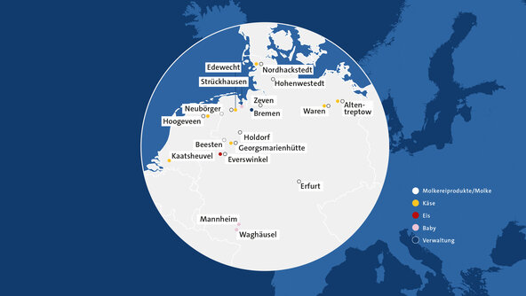 Mit mehr als 20 Standorten, darunter der Unternehmenssitz in Zeven und der zentrale Verwaltungsstandort Bremen, ist die DMK Group Deutschlands größte Molkereigenossenschaft. Auch in den Niederlanden, Italien und in ausgewählten international Hubs sind wir aktiv und nah bei unseren Partnern und Konsumenten. Als einer der größten Lieferanten des deutschen Lebensmitteleinzelhandels und mit einem Umsatz von 5,1 Milliarden Euro gehört die DMK Group europaweit zu den führenden Unternehmen der Ernährungswirtschaft.